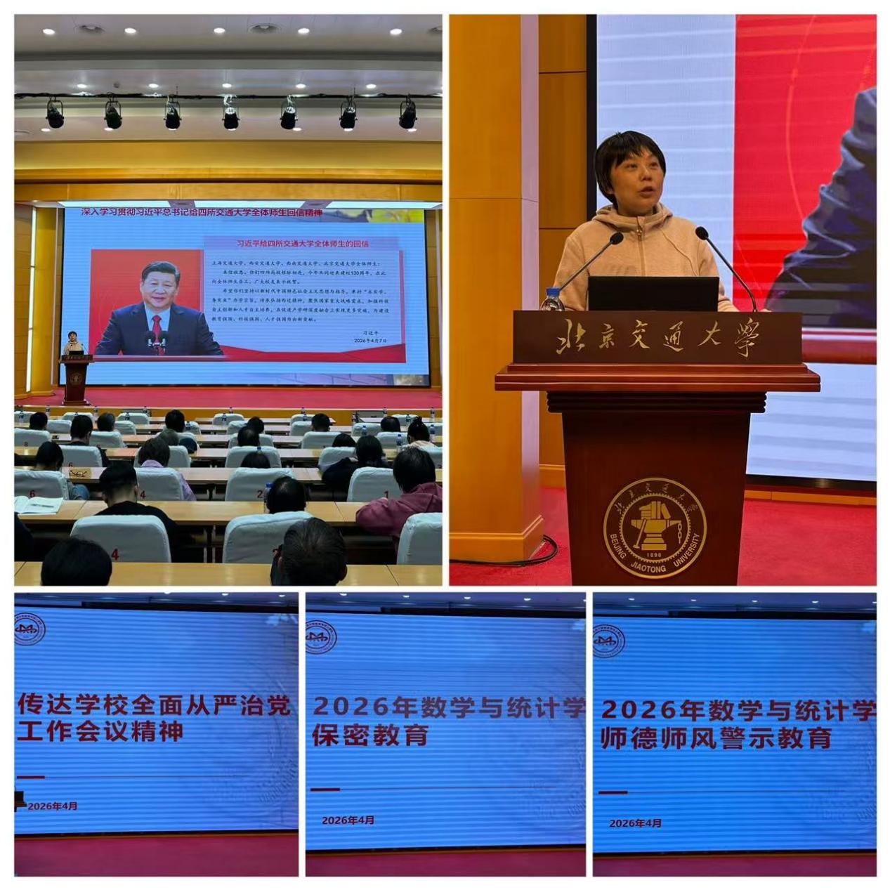 公司党委书记王烜带领全体参会人员重温了习近平总书记给四所交通大学全体师生回信,学习了习近平总书记在河北雄安新区考察重要讲话精神,传达了集团全面从严治党工作会议精神,并开展了师德师风警示教育以及保密宣传教育。她强调,要紧扣学校“双核驱动、立足京津冀、面向世界”发展目标,以雄安校区建设为契机深化改革创新,同时严守安全底线,筑牢意识形态、保密与廉洁自律防线,为学院发展营造风清气正、安全稳定的环境。王烜提出明确要求,一是提高政治站位,深入学习贯彻上级重要指示精神,把思想和行动统一到学校与学院发展上来;二是压实全面从严治党责任,持之以恒正风肃纪,加强廉洁文化建设,营造良好政治生态;三是强化师德师风建设,全体成员争做“四有”好老师;四是严守保密与安全红线,规范使用智能办公工具,防范各类泄密与安全风险,维护学院和谐稳定。